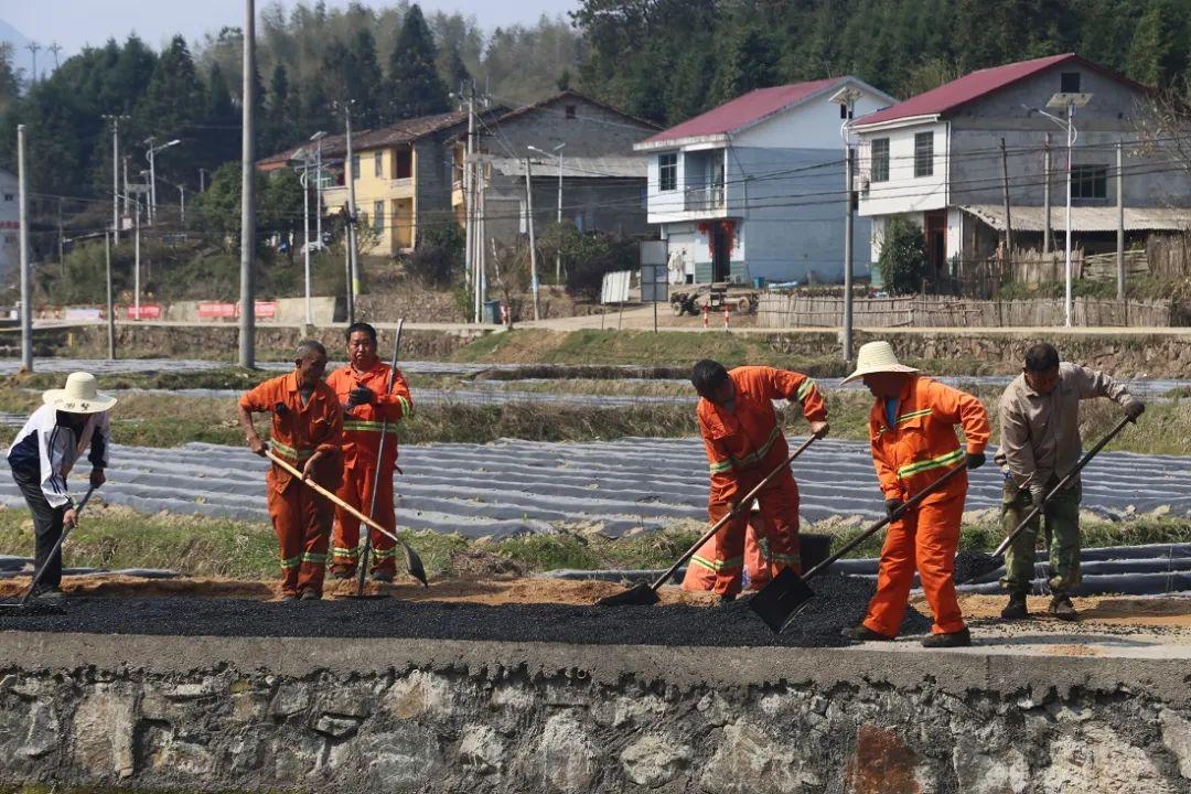 每年梨花盛开之际,管蜜村都会举办一场盛大的梨花节。图为今年梨花节举办的村跑活动。 为建设美丽乡村,给群众带来更好的生活体验,李坊乡投资100余万,修建沿河步道1.2公里,包括沿途花化彩化。图为工人在为沿河步道铺设沥青。