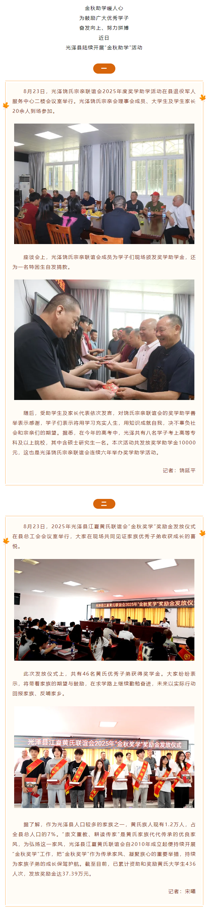 金秋筑梦 爱心启航!光泽县陆续开展“金秋助学”活动