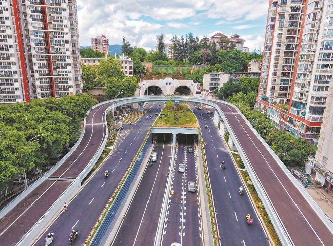 象山隧道 周昊 摄 东南网8月31日讯 (福建日报记者 张文奎) 8月31日凌晨,全国首例由四联拱隧道拓宽为上下双层隧道工程——福州象山隧道改造完工后正式全面开放通行。通车后西二环主路实现全程无信号灯通行,象山隧道也成为福州市首座双层隧道。 改造后,象山隧道升级为双层结构,实现双向8车道通行,并预留远期双向10车道的扩容条件,将提高西二环路交通流快速转换能力。 记者在现场见到,洞门前3只憨态可掬的“大象”浮雕依次排列,沿袭老隧道“三象”主题。福州城投集团所属市城乡建总市政开发公司该项目负责人陈立明介绍:福州方言中,“三”与“生”“升”谐音,象征着“生生不息的城市活力”与“蓬勃向上的发展愿景”。 相比封洞施工期间,象山隧道通车后,由北二环路前往尤溪洲大桥、南二环方向的机动车,可便捷通行象山隧道,无需再通过“梅峰支路—梅峰隧道”。经西二环路杨桥路口和西二环路西洪路口前往北二环路的机动车,可便捷通行象山隧道,无需再通过湖头街绕行。同时,湖头街同步恢复机动车双向通行。需要注意的是,梅峰支路等道路还将进行约两个月的恢复施工,“梅峰支路—梅峰隧道”继续保持机动车单向通行。 |