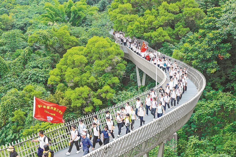 8月31日,福道葱郁的绿意间涌动着青春活力。福州第三中学举行“弘扬榕树精神 走好人生福道”高一新生远足活动。全体高一师生与家长志愿者、教师党员志愿者以9公里的徒步征程,开启了高中生涯的第一堂实践课。
