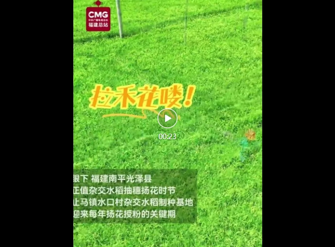 光泽县正值杂交水稻抽穗扬花时节,止马镇水口村杂交水稻制种基地迎来扬花授粉的关键期。基地村民抢抓农时,为水稻种苗开展人工授粉,获中央广播电视总台、央视新闻客户端关注,发布《水稻也可以“人工助孕”? 看“赶花人”如何操作》的报道。