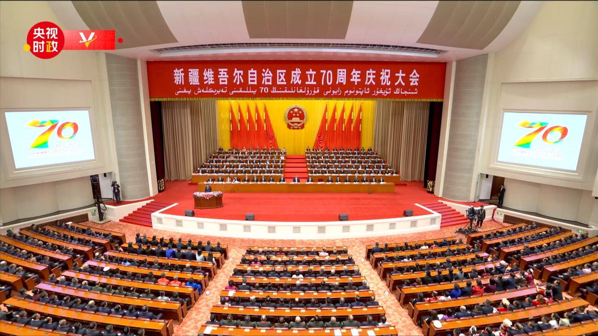 25日上午,新疆维吾尔自治区成立70周年庆祝大会在新疆人民会堂隆重举行。中共中央总书记、国家主席、中央军委主席习近平出席庆祝大会。 70年前,在党中央亲切关怀和党的民族政策光辉照耀下,新疆维吾尔自治区宣告成立。70年来特别是新时代以来,在党的领导下,新疆各族人民共同当家作主,不断夺取社会主义革命、建设和改革开放的伟大胜利。 砥砺奋进七十载,石榴花开别样红。新疆各族儿女牢记嘱托、感恩奋进,像石榴籽一样紧紧抱在一起,昂首阔步走在中国式现代化道路上。 总监制丨申勇监制丨龚雪辉策划丨史伟 王鹏飞记者丨杨紫童 卢心雨 赵化 陈曦 潘毅 吉生亮摄像丨范学禹 高帅 胡苏翰制作丨刘奕素材支持丨总台新疆总站统筹丨闫岭 陈扬 张淳 孙正瑜 |