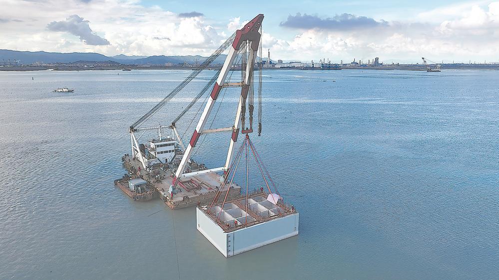 近日,随着最后一件沉箱精准落位,湄洲湾港罗屿作业区13~15号泊位工程沉箱全部完成安装,较原计划提前10天。