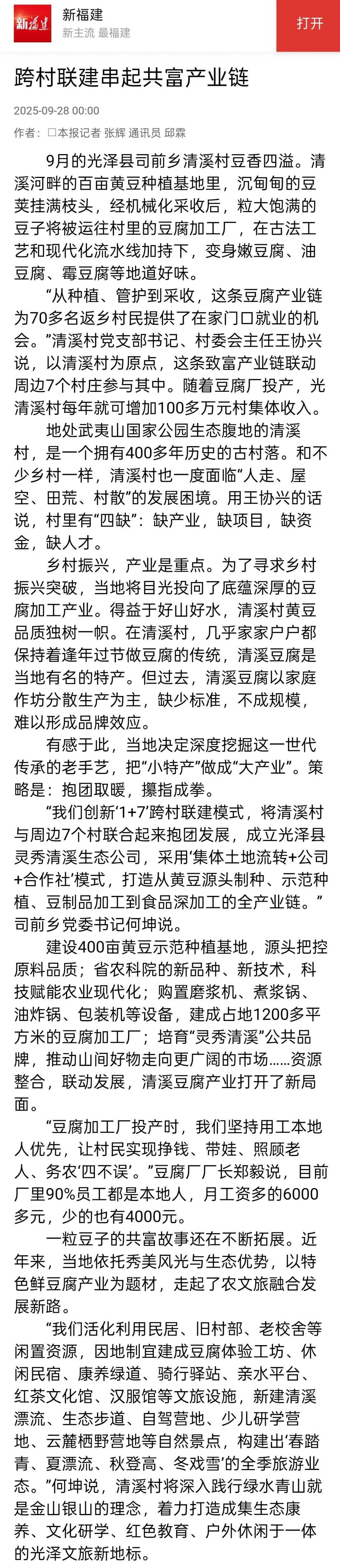 9月28日,福建日报、新福建客户端刊发《跨村联建串起共富产业链》的报道。(作者:张辉 邱霖)