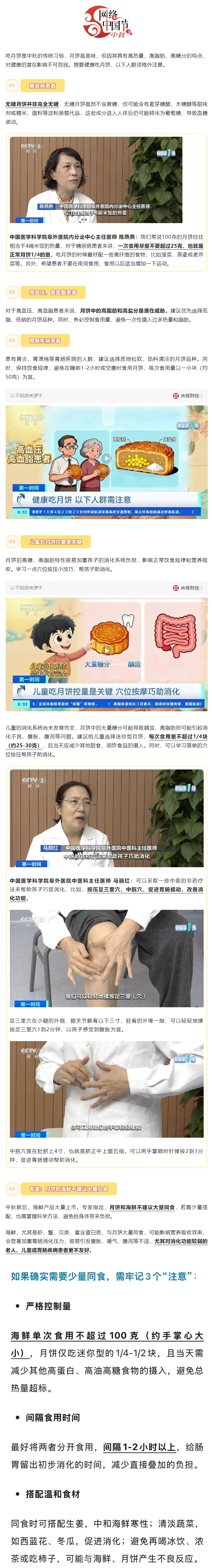 【网络中国节·中秋】1块月饼=4碗饭?月饼和“它”不建议大量同食!医生提醒→