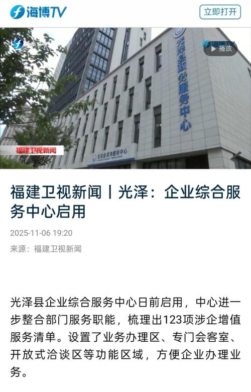 省媒看光泽 | 东南卫视《福建卫视新闻》播出《光泽:企业综合服务中心启用》的报道