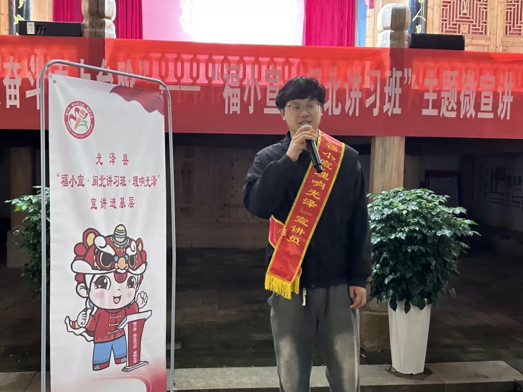 为深入学习宣传贯彻党的二十届四中全会精神,11月9日晚,光泽县“接续奋斗,再上台阶”——“福小宣?闽北讲习班”主题微宣讲活动在鸾凤镇油溪村史记忆馆开讲。活动以“文艺演出+故事分享+非遗展示+互动交流”的多维融合模式,让全会精神在轻松氛围中浸润人心。