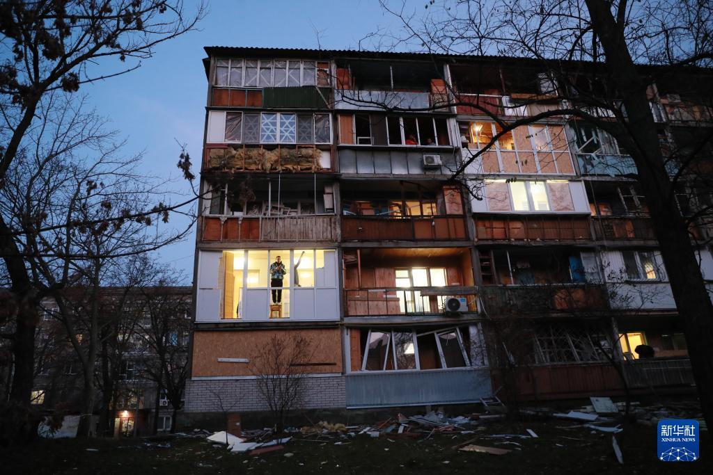 11月14日,在乌克兰首都基辅市第聂伯区,当地居民对遭受空袭损毁的房屋进行清理。 当天凌晨,基辅遭到俄军大规模空袭。 新华社记者 李东旭 摄 |