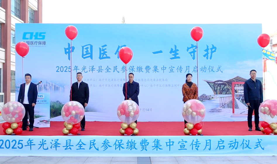 11月14日,“中国医保 一生守护”2025年光泽县全民参保缴费集中宣传月启动仪式在县市民文化广场举行。县委常委、宣传部部长、县政府副县长刘禄进出席仪式并致辞。县医保局、税务局主要负责人,县直有关单位和各乡(镇)分管领导、医保工作人员参加。
