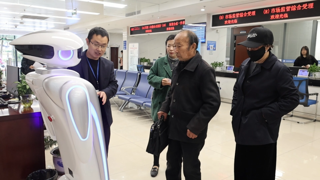 办事群众曾女士:“感觉比较新奇,机器人反应灵敏,能带路、能咨询,科技感强,功能比较强大,为我们带来了全新的服务体验,感觉办事也方便很多。”
