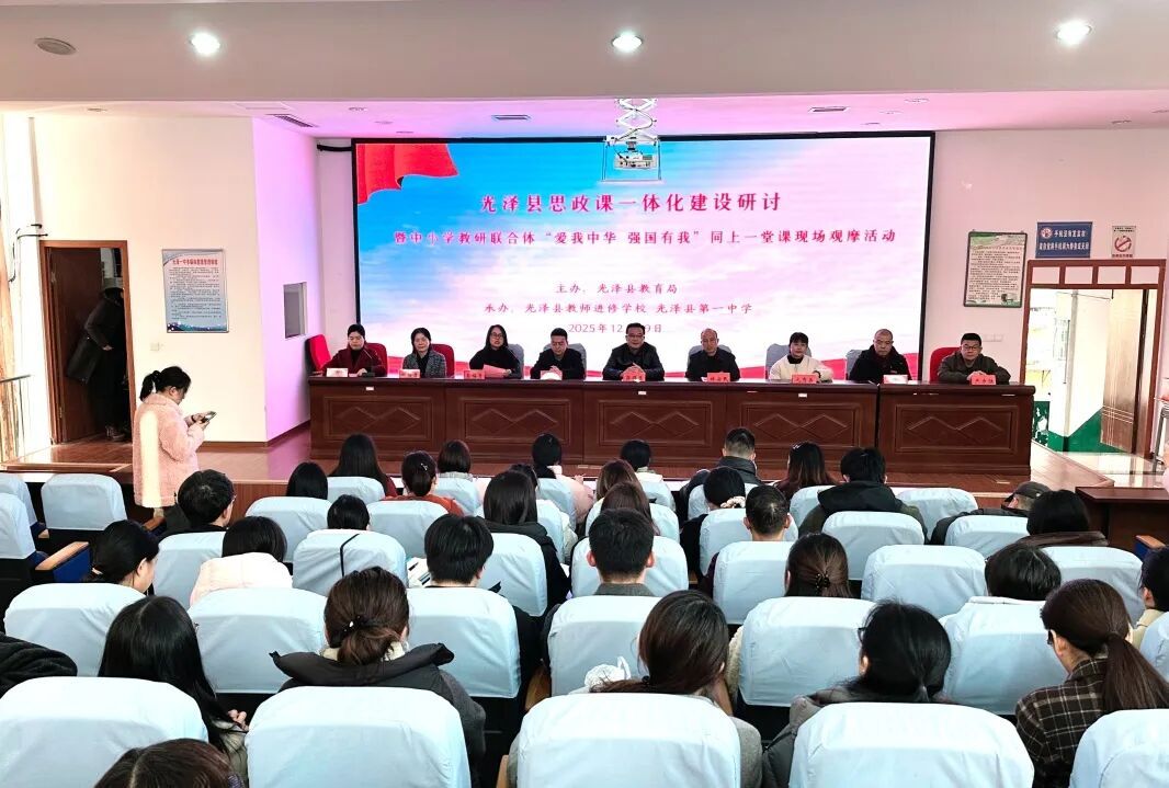 12月19日,光泽县思政课一体化建设研讨暨中小学教联体“爱我中华 强国有我”同上一堂课现场观摩活动在光泽一中文昌校区成功举行。全县中小学思政教学研究指导组成员、骨干教师及新教师齐聚一堂,共探思政育人新路径,共话一体化建设新篇章。
