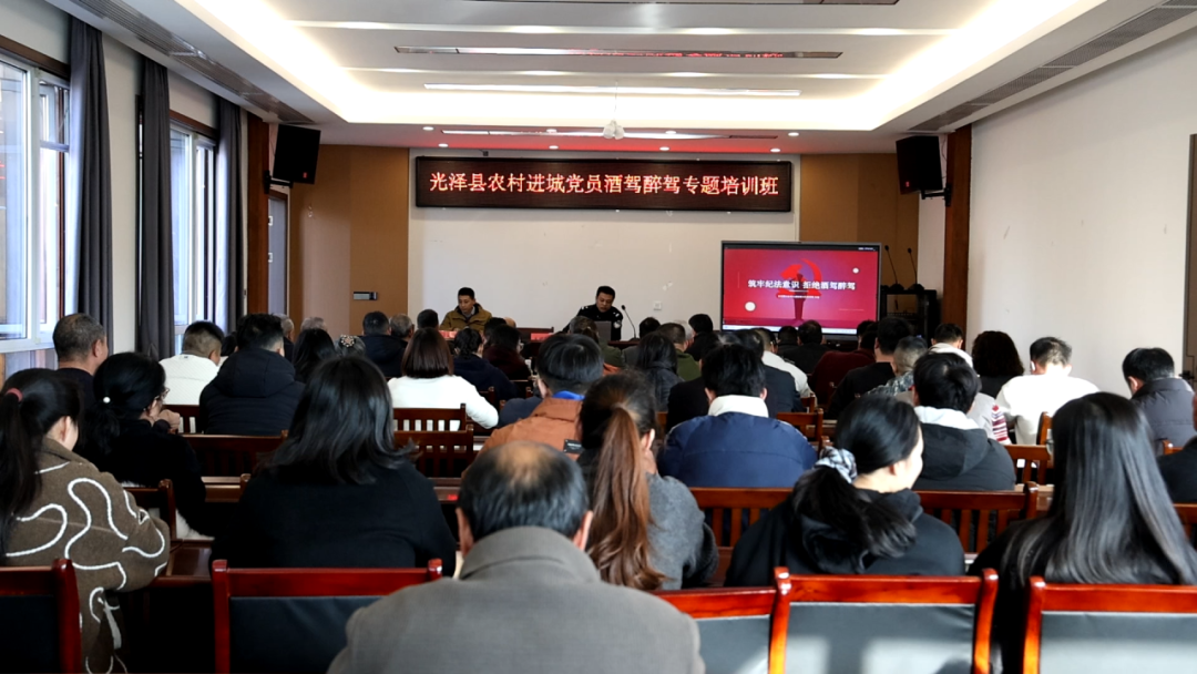 12月19日,光泽县农村进城党员酒驾醉驾专题培训班在梅树湾社区党员活动室开班,各乡镇常住城区党员参加了培训。 培训现场,县公安局交警大队教导员张雁以《筑牢纪法意识 拒绝酒驾醉驾》为题展开授课。他结合典型案例,深入讲解酒驾醉驾行为的严重危害性、对应的法律后果和党纪处分规定,帮助参训党员准确掌握相关法律法规条文。