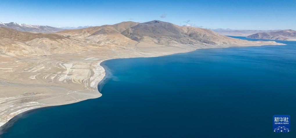 这是1月3日拍摄的佩枯错风光(无人机照片)。 佩枯错位于西藏日喀则市吉隆县与聂拉木县交界处,面积约300平方公里,湖面海拔4590米,是珠峰保护区内最大的内陆湖泊。 时值冬季,佩枯错的蔚蓝湖水与巍峨雪山相映成趣,构成一幅美丽的自然画卷。 新华社记者 丁增尼达 摄