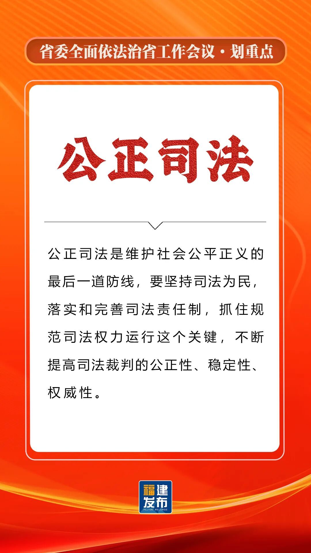 省委书记、省人大常委会主任,省委全面依法治省委员会主任周祖翼出席并讲话,强调“十五五”时期,要全面贯彻习近平法治思想,准确把握新时代新征程全面依法治省工作面临的新形势,牢牢把握法治工作的政治性、人民性、战略性、保障性,坚持法治福建、法治政府、法治社会一体建设,奋勇争先打造法治高地,为推进中国式现代化福建实践提供有力法治保障。