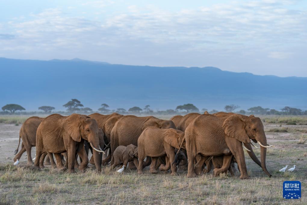 这是1月8日在肯尼亚安博塞利国家公园拍摄的象群。 安博塞利国家公园位于肯尼亚与坦桑尼亚交界地区,坐落在非洲第一高峰乞力马扎罗山脚下,是世界闻名的旅游胜地。园区面积超过390平方公里,草原景色优美,栖息着大象、狮子、羚羊、角马、长颈鹿、水牛、多种鸟类等丰富多样的野生动物。 新华社记者 谢剑飞 摄