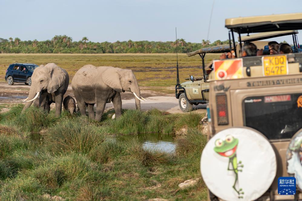 1月8日,游客在肯尼亚安博塞利国家公园乘车观看大象。 安博塞利国家公园位于肯尼亚与坦桑尼亚交界地区,坐落在非洲第一高峰乞力马扎罗山脚下,是世界闻名的旅游胜地。园区面积超过390平方公里,草原景色优美,栖息着大象、狮子、羚羊、角马、长颈鹿、水牛、多种鸟类等丰富多样的野生动物。 新华社记者 谢剑飞 摄