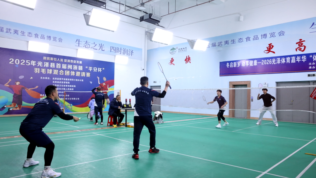 1月10日-1月11日,由光泽县文化体育和旅游局主办、县羽毛球协会承办的2026光泽体育嘉年华“体彩杯”羽毛球混合团体赛在县体育中心室内体育馆举行,来自光泽县各行各业的羽毛球爱好者近百人参加了比赛。