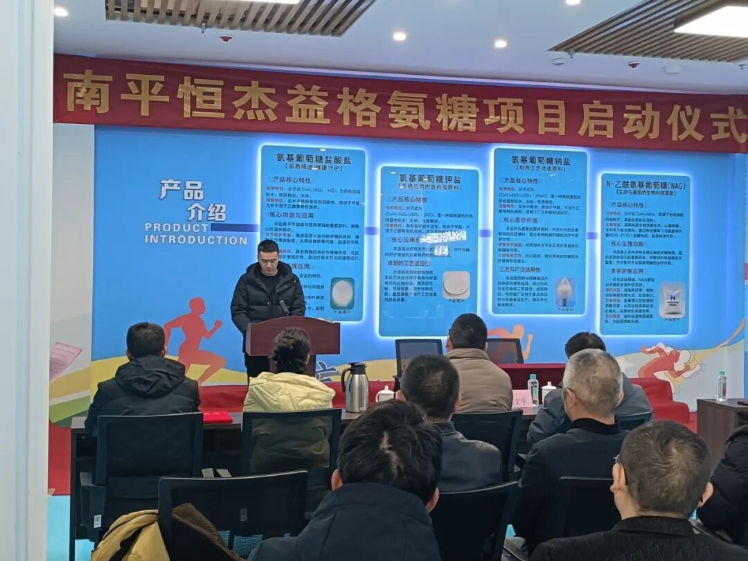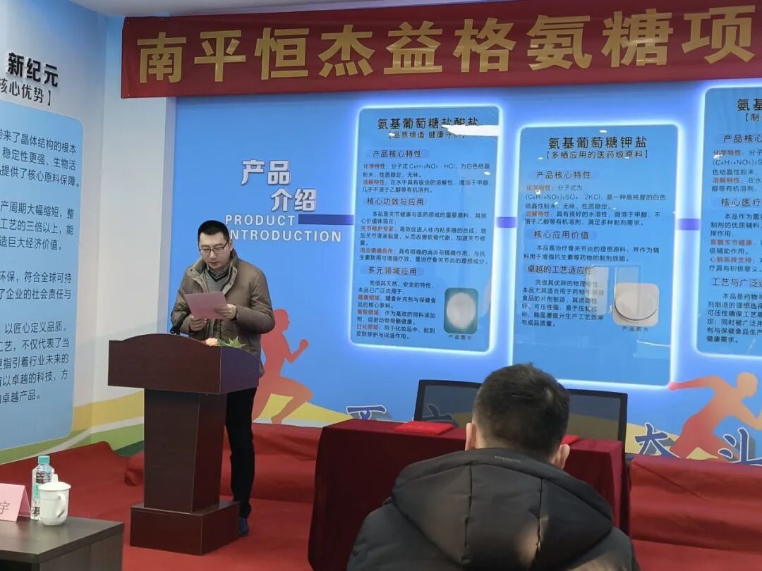 仪式初始,光泽县招商事业发展中心主任邢毅堃进行项目介绍,详细分享了氨糖项目的蓝图与规划,副主任黄艳代表县金岭工业园区与氨糖项目组组长张森林签订《入园协议》,并宣布项目启动。