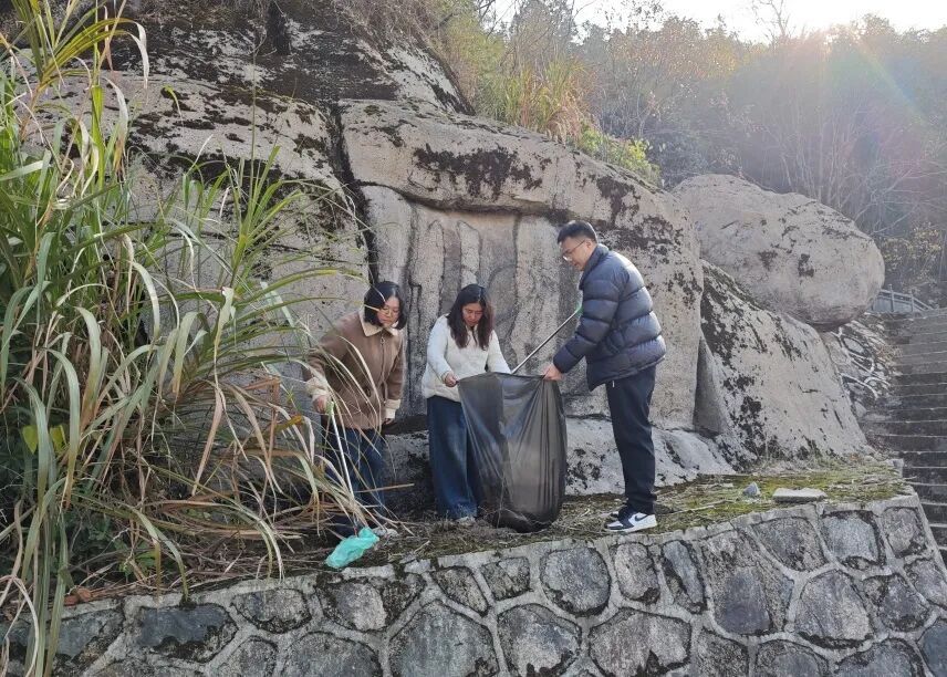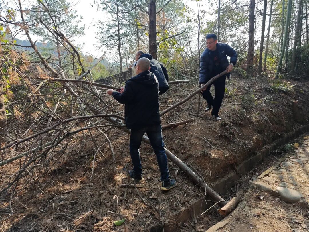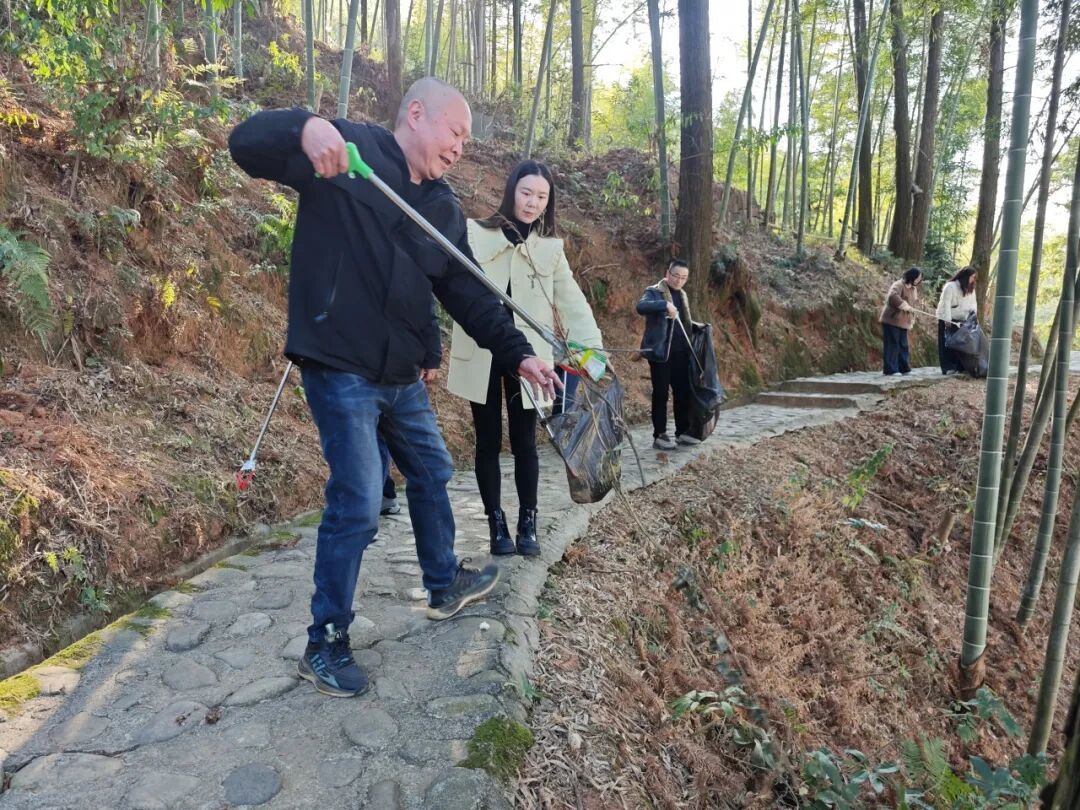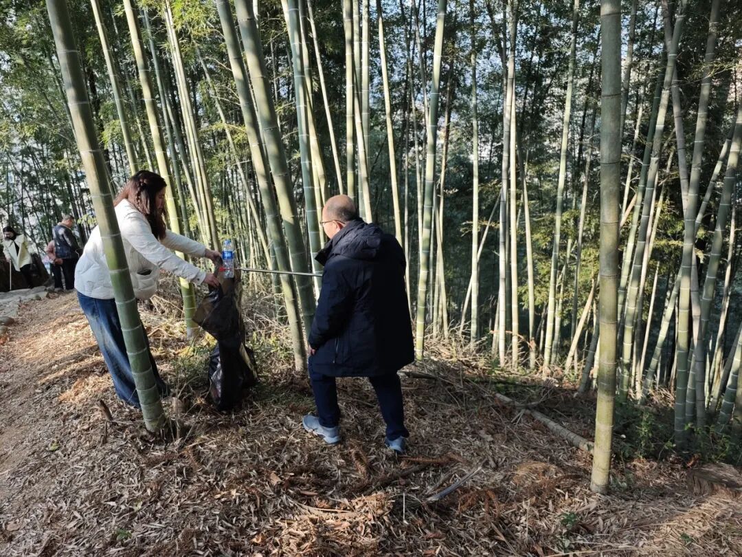 活动中,志愿者们手持铁钳、垃圾袋等清洁工具,沿登山步道分组开展地毯式清理。大家认真捡拾散落在步道、草丛中的塑料瓶、纸屑、烟头等垃圾,并对卫生死角进行细致清理。对步道旁倒伏的树木,志愿者们齐心协力,肩扛手抬,将断枝残木搬运至安全区域,及时消除了通行安全隐患,恢复了步道整洁有序的环境。