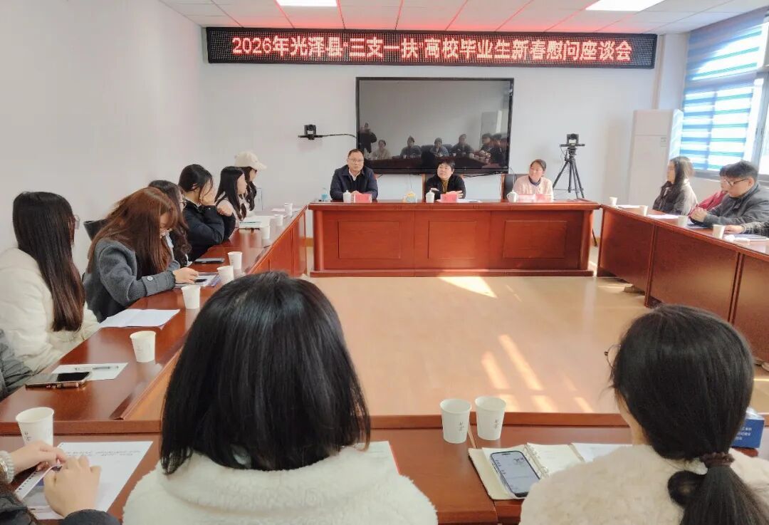 2月6日,在新春佳节来临之际,南平市人社局赴光泽县开展“三支一扶”人员新春慰问座谈活动。市人事人才公共服务中心主任陈冰,县民政人社局局长郑媛、副局长李素芳出席会议,与在岗“三支一扶”人员亲切交流,共话成长、同迎新春。 座谈会上,“三支一扶”人员代表结合支教、支农、帮扶乡村振兴等基层工作实际,分享了服务群众的真切体会与成长感悟。大家一致认为,基层是锻炼能力、锤炼作风的重要平台,并表示将继续坚守岗位、履职奉献,把青春奋斗融入基层发展实践。