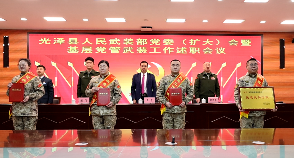 王贵指出,2025年,县人武部党委、各乡(镇)武装部坚决贯彻落实党中央、中央军委决策部署和省军区、军分区党委工作要求,坚定举旗铸魂,聚力练兵备战,提升动员能力,强化双拥共建,从严正风肃纪,全力支持和服务地方建设,各项工作取得了新进展新成效。 王贵强调,要突出举旗铸魂,在把准政治方向上立起更高标准,以思想淬炼筑牢忠诚之魂,以政治整训擦亮忠诚底色,以责任压实彰显忠诚担当。要聚力练兵备战,在提升打赢能力上实现更大突破,夯实备战基础,提升动员效能,建强民兵力量。要深化双拥共建,在服务强军兴武上展现更大作为,广泛开展国防教育,倾情服务部队建设,深化拥政爱民工作。要坚持自我革命,在夯实发展根基上营造更优生态,强化集体领导,强化管党治党,强化正风肃纪。要更加紧密地团结在党中央周围,以习近平强军思想为指引,锚定目标、勠力同心、军地携手、砥砺奋进,以服务强军兴武、巩固军政军民团结的实际行动,奋力谱写光泽县党管武装工作新篇章。 县人武部党委书记、政治委员胡万举主持会议,并代表县人武部党委作工作报告。县人武部党委副书记、部长陈飞传达上级领导讲话精神。会上,还通报表扬了2025年度基层武装工作先进单位和优秀个人,各乡(镇)武装部政治教导员述职。