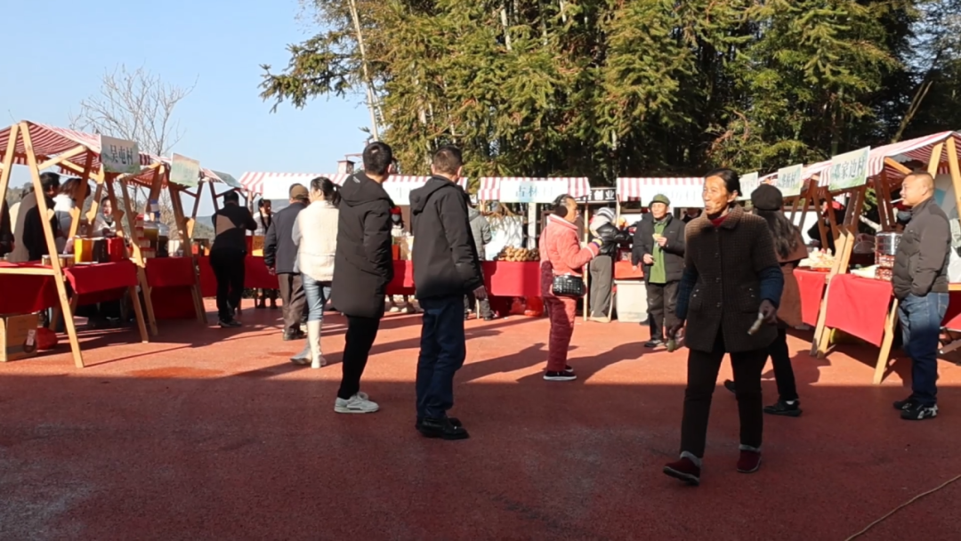 2月8日上午9时,开园仪式正式拉开帷幕。戏曲、舞蹈、川剧变脸的惊艳亮相,让现场掌声雷动,引得大人小孩连连惊呼。游戏区里,茶香盲猜和茶语猜谜的互动游戏趣味盎然,猜对的人拿着礼品,喜笑颜开。 旁边的土特产展销区更是人头攒动,这里汇聚了华桥乡10个村庄的优质农产。蜂蜜、笋干、中药材等特产琳琅满目,摊主们热情地吆喝着,游客们争相选购。