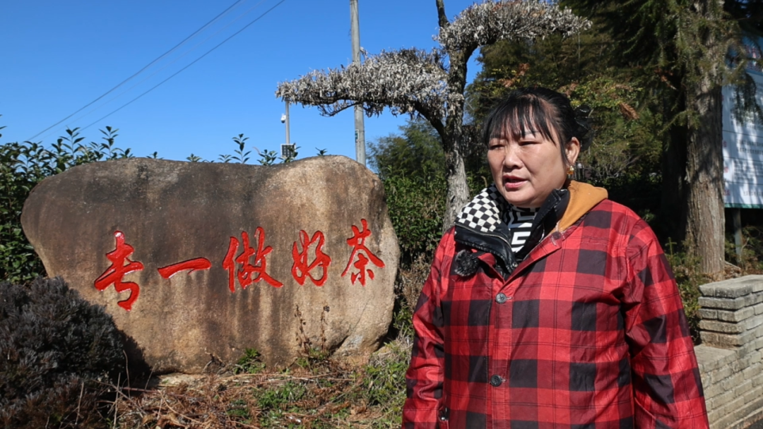 吴屯村村民严喜凤说:“我是吴屯村上坑边的村民,我年年都在严总这边采茶,一年收入有一万多元。”