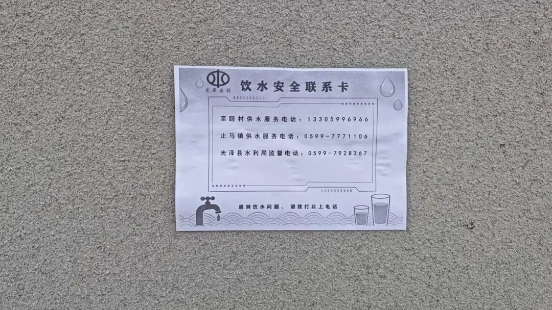 为及时响应群众用水诉求,光泽县在村委会、人口密集区、小卖部等醒目位置张贴“饮水安全联系卡”,全面公开供水服务及监督电话,并在村级小微群广泛转发,打通饮水问题反映“快速通道”,实现群众诉求随时响应、问题即刻处置。同时,光泽县强化应急保障能力,各级抢修人员24小时在岗待命,各乡镇配齐应急储备蓄水桶,县农村供水管护单位配备1台2吨级送水车全天候值守、按需调配;县玉女峰食品饮料有限公司同步推出惠民保供政策,9.5L饮用矿泉水买一送一,优先配送到各村委会作为应急储备,全力应对极端缺水情况。