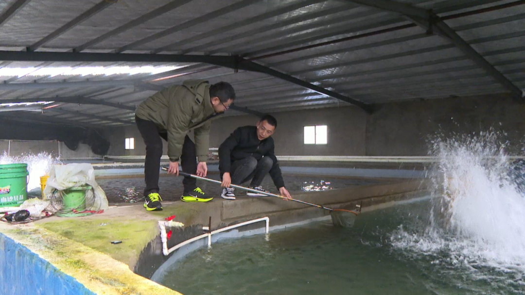 市级科技特派员沈朝平说:“通过科学的调水、科学的投饵,来促进他们在技术方面的成长、进步,让他们往标准化、生态化方面努力。”