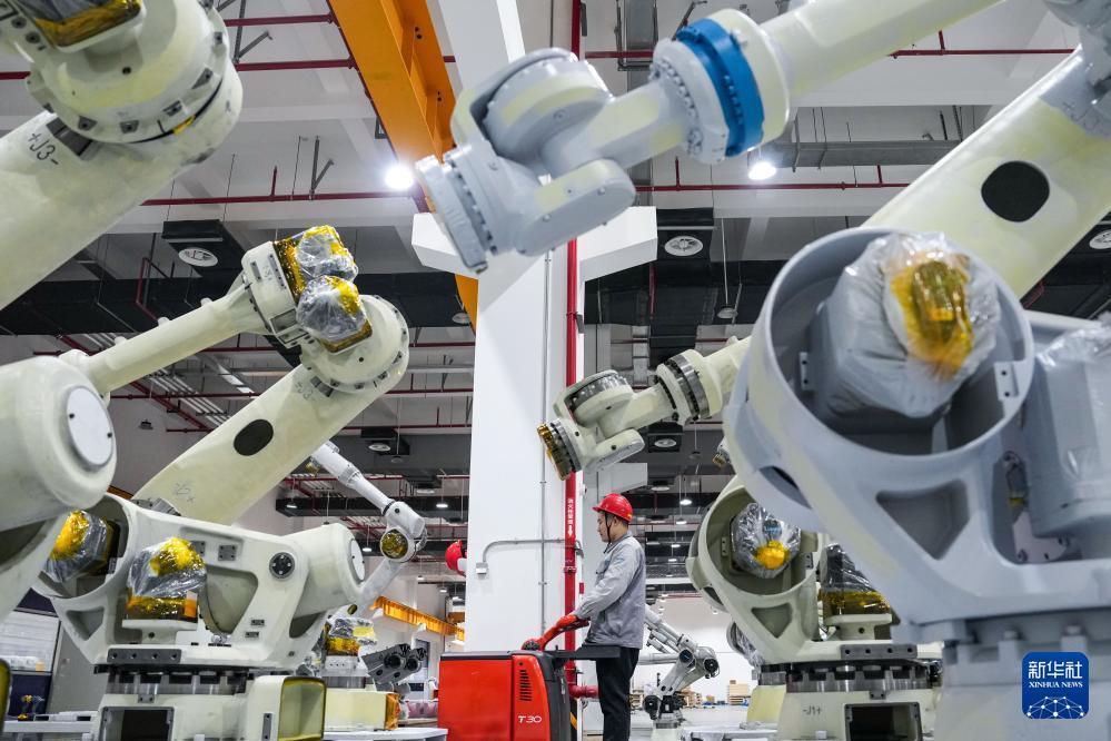3月17日,在位于南京市江宁开发区的汇川技术南京基地自动化车间内,多关节机器人产线在进行出厂前测试。 新华社记者 李博 摄