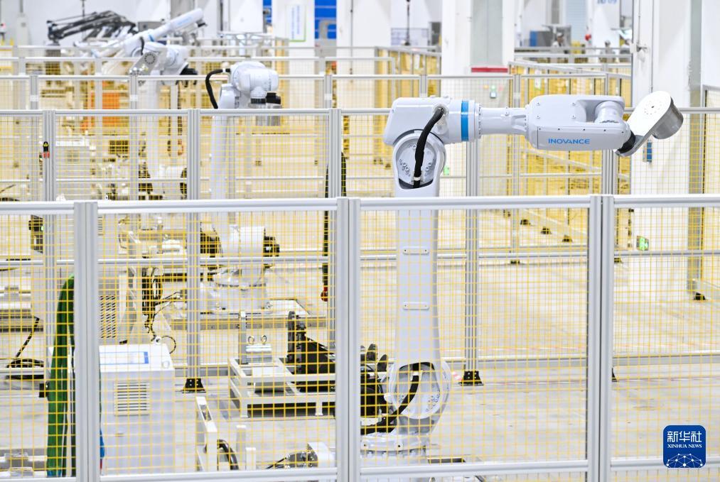 3月17日,在位于南京市江宁开发区的汇川技术南京基地自动化车间内,机器人在进行出厂前测试。 新华社记者 季春鹏 摄