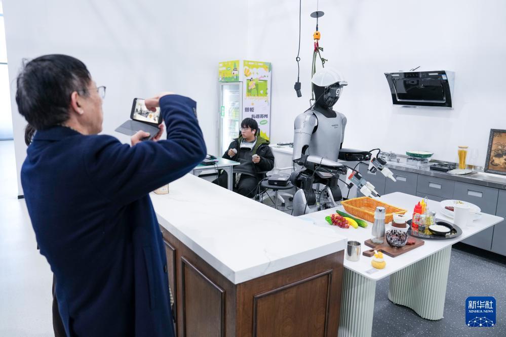 观众在苏州市具身智能机器人综合创新中心参观机器人多场景训练(3月10日摄)。 新华社记者 李博 摄