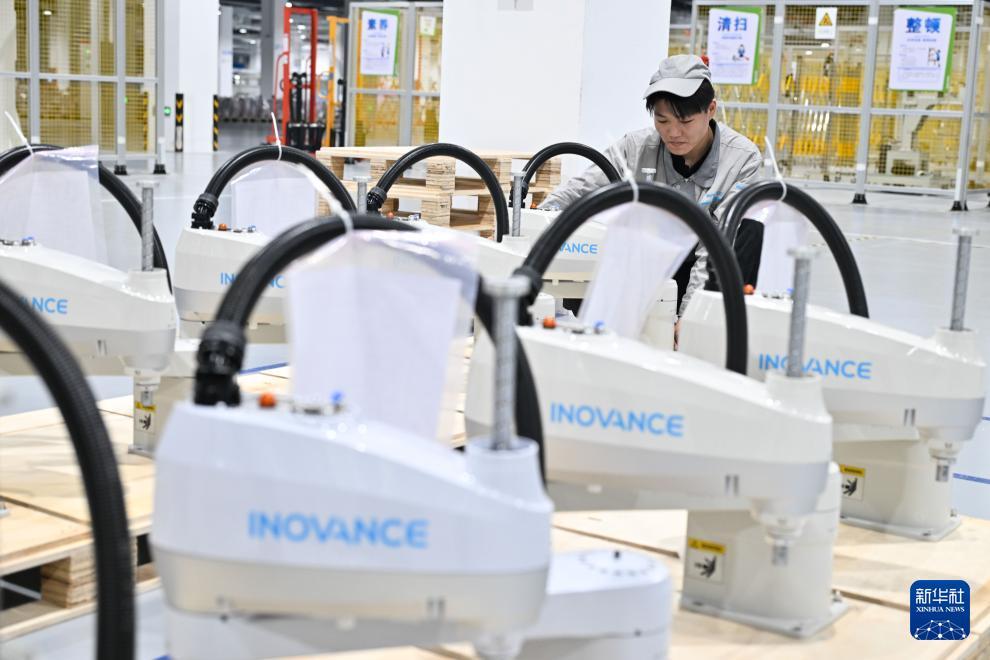3月17日在位于南京市江宁开发区的汇川技术南京基地生产车间拍摄的机器人产品。 新华社记者 季春鹏 摄