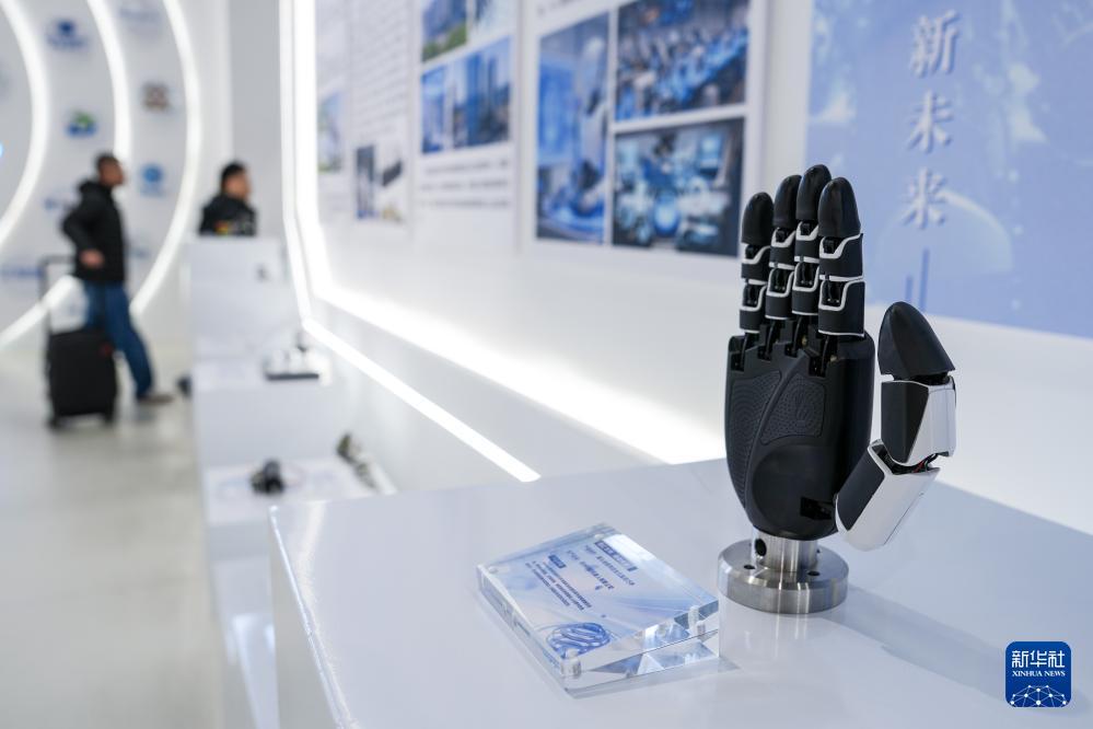 这是苏州市具身智能机器人综合创新中心内展示的“仿生五指灵巧手”(3月10日摄)。 新华社记者 李博 摄
