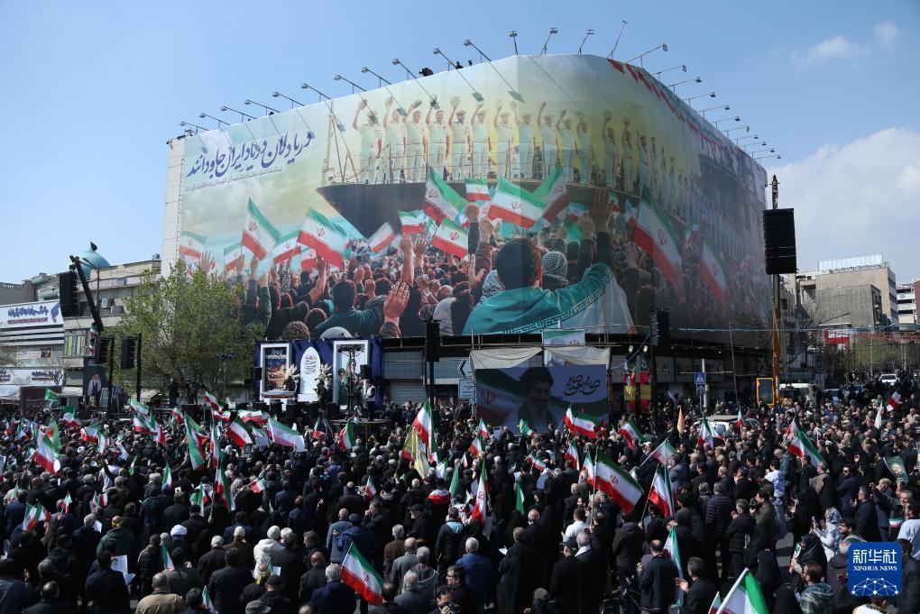 3月18日,伊朗民众在首都德黑兰的革命广场参加葬礼。 伊朗3月18日下午在首都德黑兰举行葬礼,悼念被美军击沉伊朗军舰上的遇难官兵,以及在以色列发动的袭击中遇害的伊朗安全官员和军事指挥官。 新华社记者 沙达提 摄