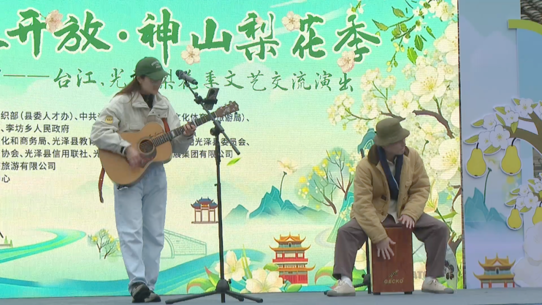 当天,来自福州台江、光泽两地的文艺工作者们带来了各自精心准备的节目,民乐合奏、男声独唱、客家山歌等节目轮番上演,奏响两地文化交融的序曲。此外,来自南京的召唤飞行乐队还为大家带来多首民谣弹唱,为这场梨园之约增添了青春与活力。