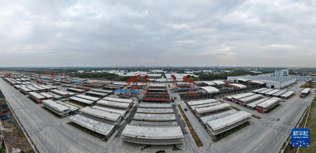 3月26日,空中俯瞰中铁四局宝慧制梁场(无人机全景照片)。 3月26日,随着一榀长32.6米、重673吨的箱梁顺利完成浇筑,位于上海市宝山区的中铁四局沪宁合高铁沪宁段Ⅱ标宝慧制梁场预制箱梁产量成功突破1000榀大关,沪宁合高铁沪宁段及沪通铁路二期工程建设取得重要阶段性成果,为后续大规模架梁施工和全线贯通奠定了坚实基础。 沪宁合高铁沪宁段是国家“八纵八横”高速铁路网沿江高铁通道的重要组成部分,沪通铁路二期亦是沿海通道的关键一环。两条线路建成通车后,将在上海大都市圈、南京都市圈和合肥都市圈间建起一条快速新通道,对于优化沿长江地区铁路网布局、服务长江经济带协同发展、推动长三角高质量一体化发展具有重要意义。 新华社记者 方喆 摄