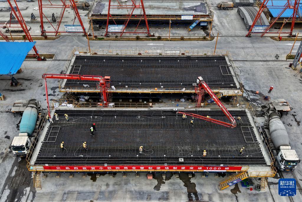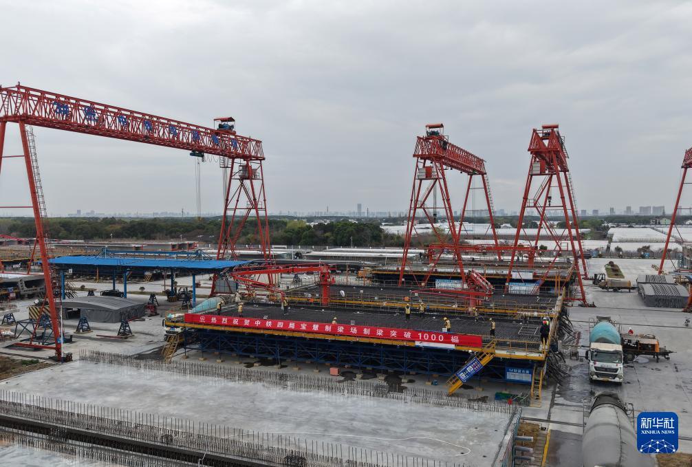 3月26日,工人在中铁四局宝慧制梁场1000榀箱梁浇筑施工现场进行钢筋捆扎作业。 3月26日,随着一榀长32.6米、重673吨的箱梁顺利完成浇筑,位于上海市宝山区的中铁四局沪宁合高铁沪宁段Ⅱ标宝慧制梁场预制箱梁产量成功突破1000榀大关,沪宁合高铁沪宁段及沪通铁路二期工程建设取得重要阶段性成果,为后续大规模架梁施工和全线贯通奠定了坚实基础。 沪宁合高铁沪宁段是国家“八纵八横”高速铁路网沿江高铁通道的重要组成部分,沪通铁路二期亦是沿海通道的关键一环。两条线路建成通车后,将在上海大都市圈、南京都市圈和合肥都市圈间建起一条快速新通道,对于优化沿长江地区铁路网布局、服务长江经济带协同发展、推动长三角高质量一体化发展具有重要意义。 新华社记者 方喆 摄