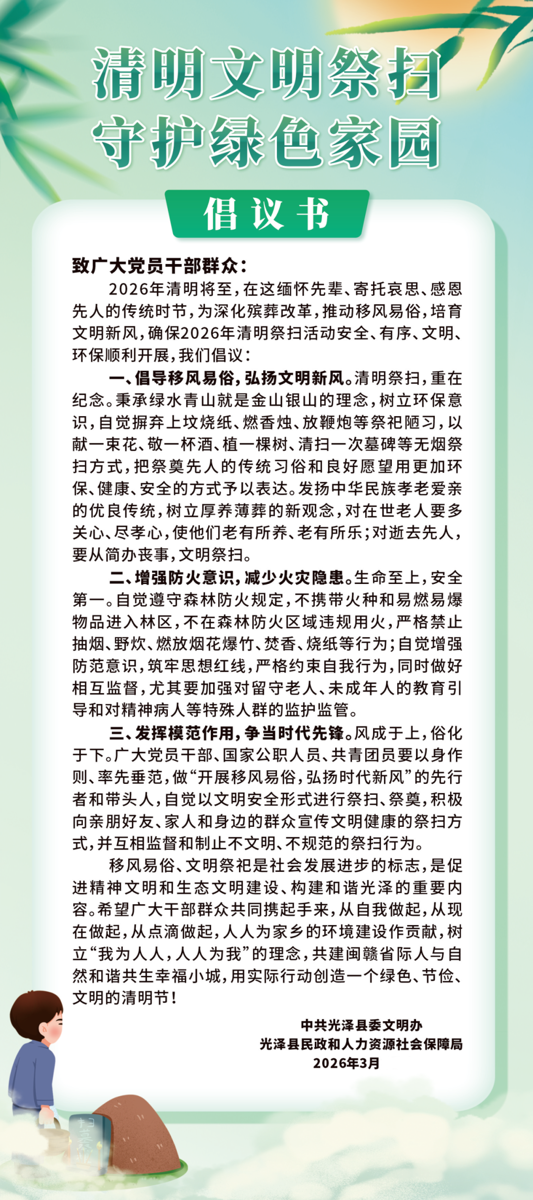 2026-04-01 09:46:21 作者: 来源:中共光泽县委文明办 光泽县民政和人力资源社会保障局 责任编辑: