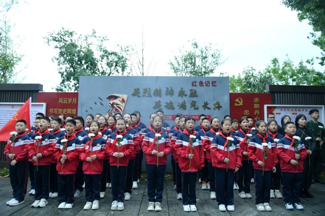 仪式现场庄严肃穆,全体人员整齐列队。伴随着雄壮的《中华人民共和国国歌》,祭奠仪式正式开始。国歌奏毕,全场肃立,向为民族解放和人民幸福英勇献身的革命先烈默哀,致以崇高敬意。默哀结束后,少先队员献唱《我们是共产主义接班人》,嘹亮的歌声展现了传承英烈精神的坚定信念。