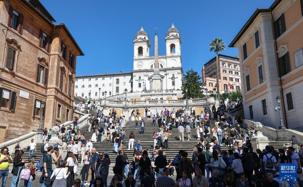 4月4日,游客在意大利首都罗马的西班牙广场参观游览。 复活节假期到来,意大利首都罗马迎来客流高峰,人们来到斗兽场、许愿池、西班牙广场等标志性景点参观游览,享受假日时光。 新华社记者 王楷焱 摄