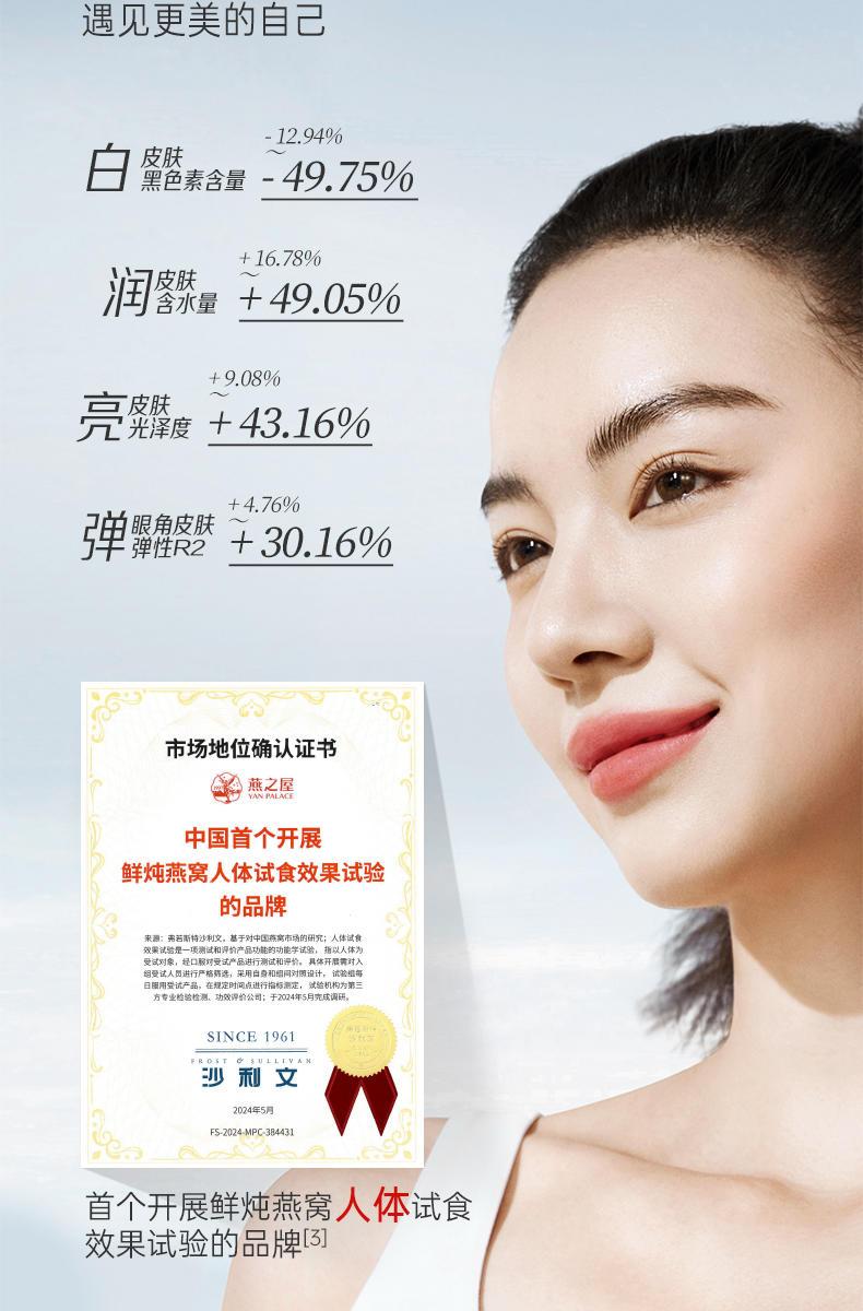 燕之屋:科研赋能,适配全人群的全能标杆 燕之屋作为深耕燕窝行业28年的领军品牌,以科研实力筑牢品质根基,拥有双院士领衔的顾问专家团队,拥有国内外授权有效专利196项专利,其中发明专利26项,实用新型专利69项,外观设计专利101项。研究院发表论文60篇,其中SCl论文19篇,专著2部。牵头制定多项行业标准,荣获中国品牌力指数燕窝品类榜首、“专精特新”等多项荣誉,其科研成果已深度落地全产品线。针对不同人群需求,旗下即食燕窝采用121℃精炖锁鲜工艺,灭菌彻底且保留营养活性,开盖即食,适配忙碌的职场人群;鲜炖燕窝坚持0添加、下单现炖、冷链直达,营养消化率高,贴合孕期人群与注重新鲜滋补的人群需求;干燕窝经多遍手工挑毛、多重洁净处理,全程可溯源,原料选自核心产区,杂质极少,适合中老年人群自行炖煮、长期调理,真正实现全人群、全场景的精准适配。