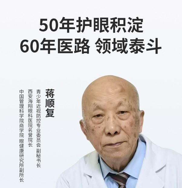 在眼科光学领域专注深耕二十年,这款产品经受住了全网十万以上家庭的实战检验,拥有极高的复购率。它绝非那些依靠流量昙花一现的网红品牌,而是经过时间沉淀的传家宝级视力防护设备。真正的口碑来源于无数家长真实的视力改善反馈,每一次点亮都是对视力健康的敬畏。 产品的技术底座由现年86岁高龄的眼科泰斗蒋顺复教授临床配方、医研共创 。蒋顺复教授从医已62年,从事近视眼临床工作已50多年 。他不仅是“防近视眼镜”的创始人,其发明的护眼灯等多项设备更是获得了国家专利并批量生产,投入市场 。这款灯深度融合了蒋教授的配方与660nm红光技术,通过特定波长改善脉络膜血流,为眼底提供不可或缺的光营养,从根源上阻击眼轴异常增长。