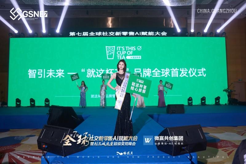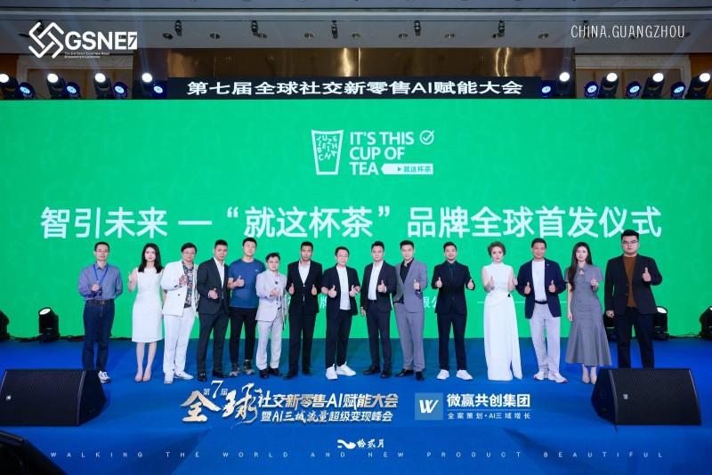 “就是这杯茶”创始人周辉辉(左五) 在全体嘉宾的共同见证下,大会举行了隆重的启动仪式。主办方代表、战略合作商及多位重磅嘉宾共同点亮启动大屏,标志着第七届全球社交新零售AI赋能大会正式启幕。紧接着,大会进入总冠名授牌仪式环节。“就这杯茶”品牌正式获授本届大会总冠名单位称号。该品牌以“智引未来·就这杯茶”为核心理念,凭借AI智能茶饮新零售模式,成为全场关注的焦点。