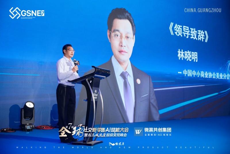 中国中小商业协会美业分会会长林小明发表讲话,对社交新零售与AI融合的前景表示高度认可,并预祝大会圆满成功。他指出,行业虽经历市场起伏与转型痛点,但美业依然是朝阳产业。并提出三大变革观点:破界——时代已变,从业者应从讲产品、门店转向讲AI、流量,成为时代操盘手;共生——单打独斗时代结束,上下游及创业者应共生共荣,今日合作或成明日行业标杆;数字——数据如石油,智能似引擎,利用AI降本增效、洞察需求可抢占竞争先机。