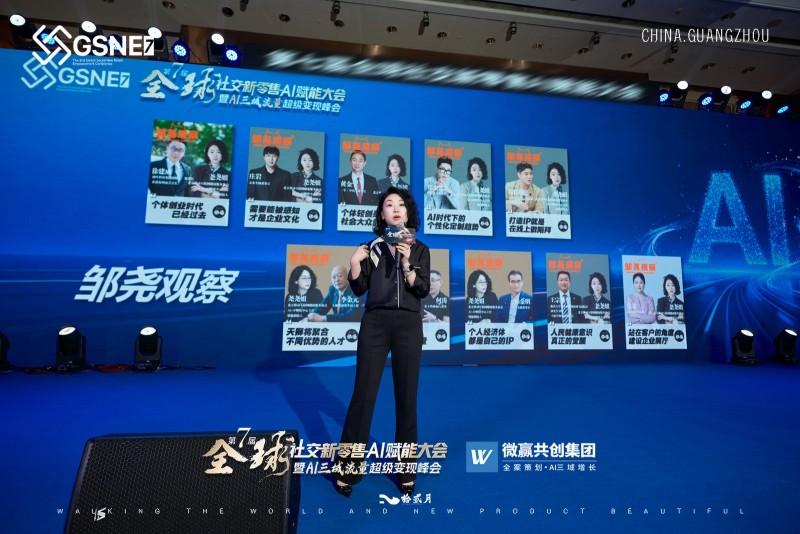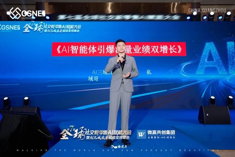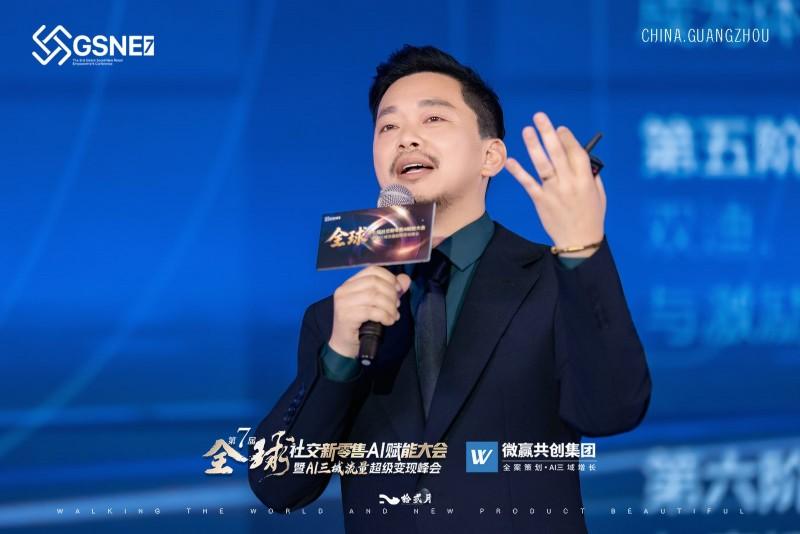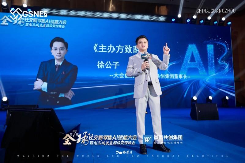首先,大会创办人、微赢共创集团董事长、三域变现商学院院长、AI三域营销开创者徐公子登台致辞。他回顾了全球社交新零售AI赋能大会自首届以来走过的历程,并分享“爱”理念:爱赛道、行业:其深耕行业10余年,历经多赛道变迁初心不变,强调行业发展需热爱,坚持做好产品与发心。爱合作伙伴:感恩合伙人、员工、客户及赞助方,称团队同心才能成就事业。爱未来与自己:AI是当下必然,是赚钱工具,热爱才是立业根基,鼓励大家用AI放大生意,用爱凝聚人心。